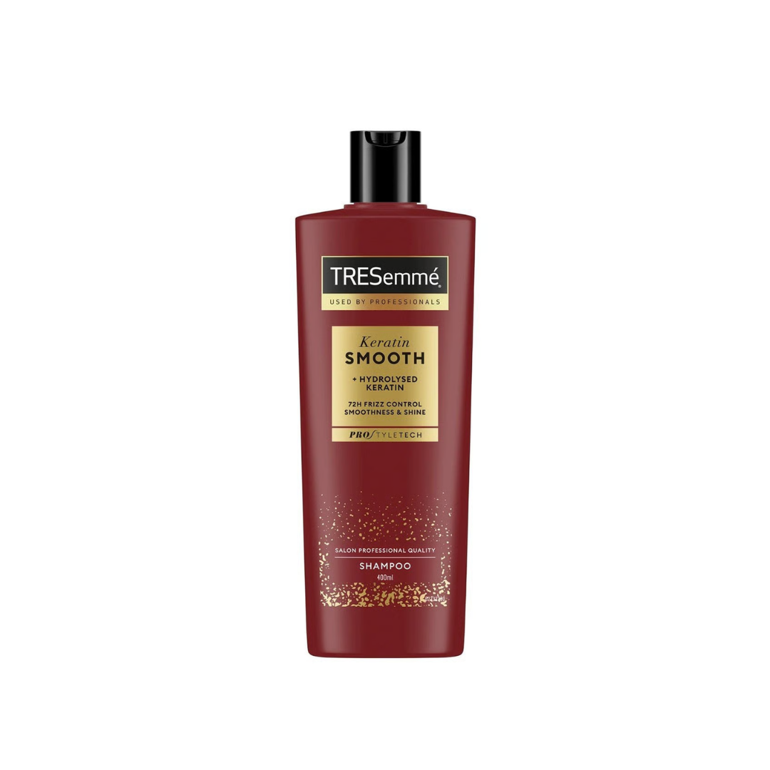 Say goodbye to dry and frizzy hair with the TRESemme Keratin Shampoo. Suitable for daily use and all hair types, this shampoo packs five smoothing benefits into one system, such as fighting frizz, detangling knots, boosting shine, adding softness, and taming flyaways. It also cleanses effectively, promising up to 72 hours of frizz control and silky-smooth hair full of natural movement.